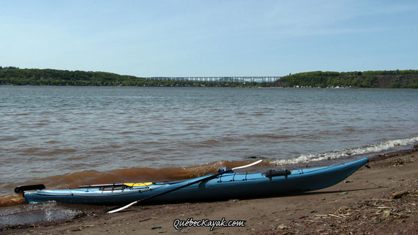 - à marée basse, on doit portager en tirant son kayak sur la vase et dans un mince filet d’eau